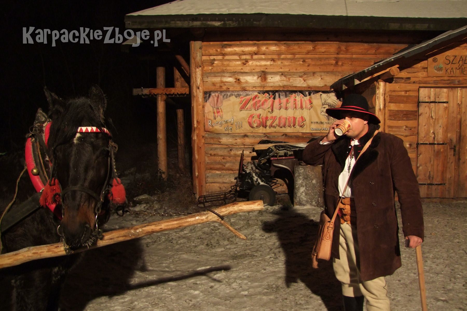 • 30 minutowy kulig bacowski, biesiada z ogniskiem przy drewnianej wiacie na polanie w lesie